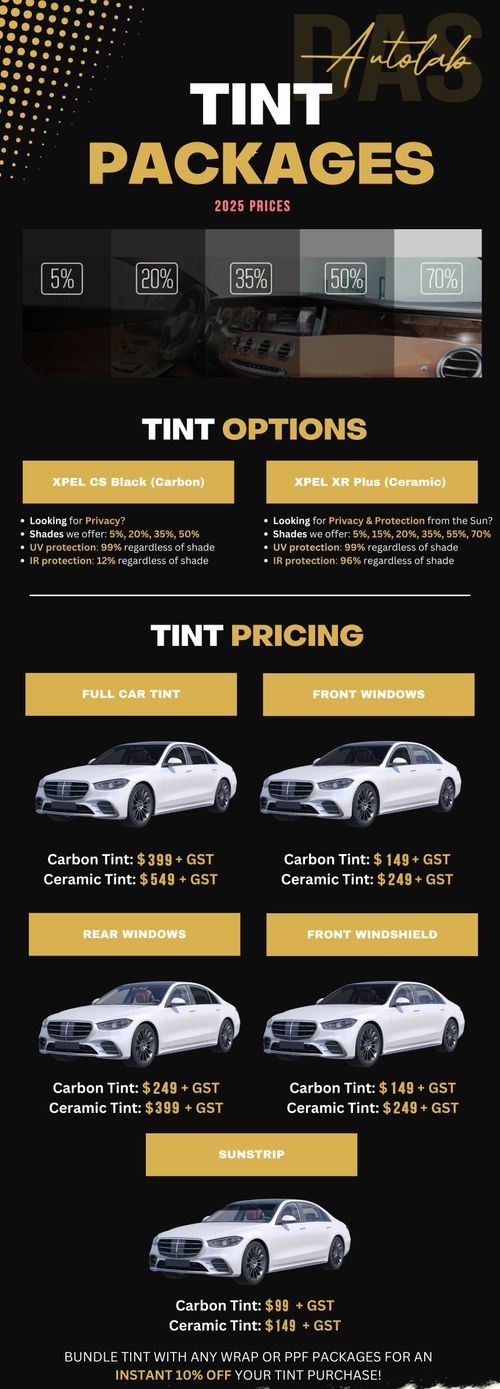 Full Carbon Tint(Front, Rear, Back): $399 + GST